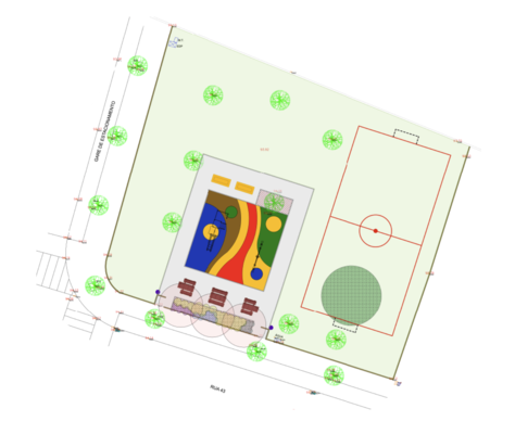 Vai ser executado um parque de merendas que promova o encontro e a realização de jogos, festas e celebrações em comunidade. Serão instaladas mesas e mobiliário inclusivo, para que uma cadeira de rodas possa circular.
