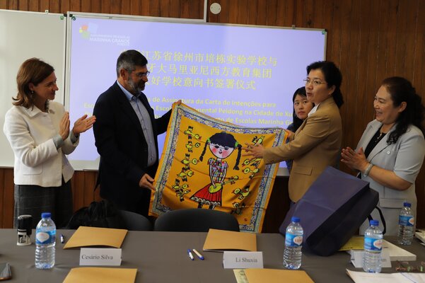 A Carta de Intenções para Escolas Amigas foi formalizada entre o Agrupamento de Escolas Marinha Grande Poente e a Escola Experimental de Peidong, na cidade de Xuzhou.