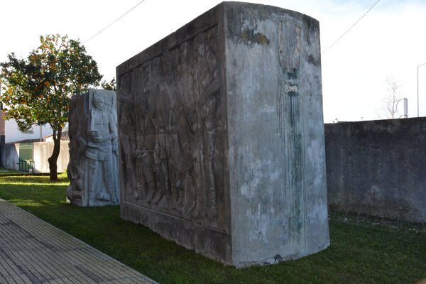 Evocativo do levantamento dos operários vidreiros em 18 de janeiro de 1934, relembra as dificuldades passadas por esta classe operária. O conjunto escultórico da autoria do escultor marinhense Joaquim Correia, é composto por dois blocos de pedra, um dos quais alberga a estátua de um operário vidreiro armado e outro ostenta um baixo-relevo que representa operários a trabalhar o vidro.