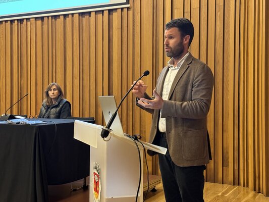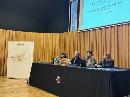O Auditório do Edifício da Resinagem, na Marinha Grande, recebeu a apresentação pública do projeto “Nazaré Green Hydrogen Valley”, no dia 18 de fevereiro, numa iniciativa promovida pela Coordenação e Desenvolvimento Regional do Centro, I.P. (CCDR Centro) e pela Agência Portuguesa do Ambiente, I.P. (APA), em colaboração com o Município, para impulsionar a descarbonização das indústrias locais.