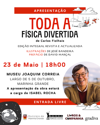 O físico e divulgador científico Carlos Fiolhais apresenta a edição integral revista e atualizada do seu livro “Toda a Física Divertida”, no próximo dia 23 de maio de 2025, pelas 18h00, no Museu Joaquim Correia, na Marinha Grande. A sessão será conduzida por Isabel Rocha.