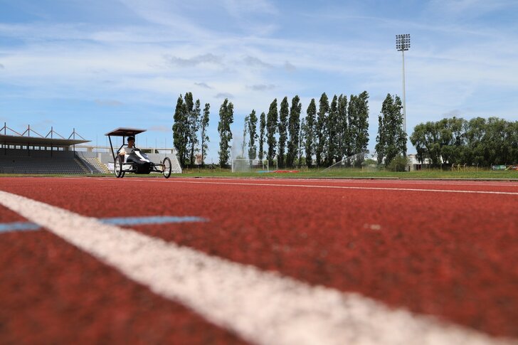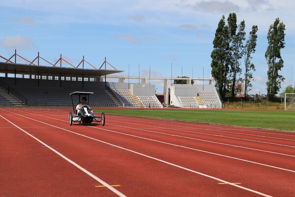 A fim de testar a performance do veículo num piso semelhante ao da competição, foi cedida, no dia 21 de maio, a pista de atletismo do Estádio Municipal da Marinha Grande, para realização de testes essenciais à afinação e segurança do carro.