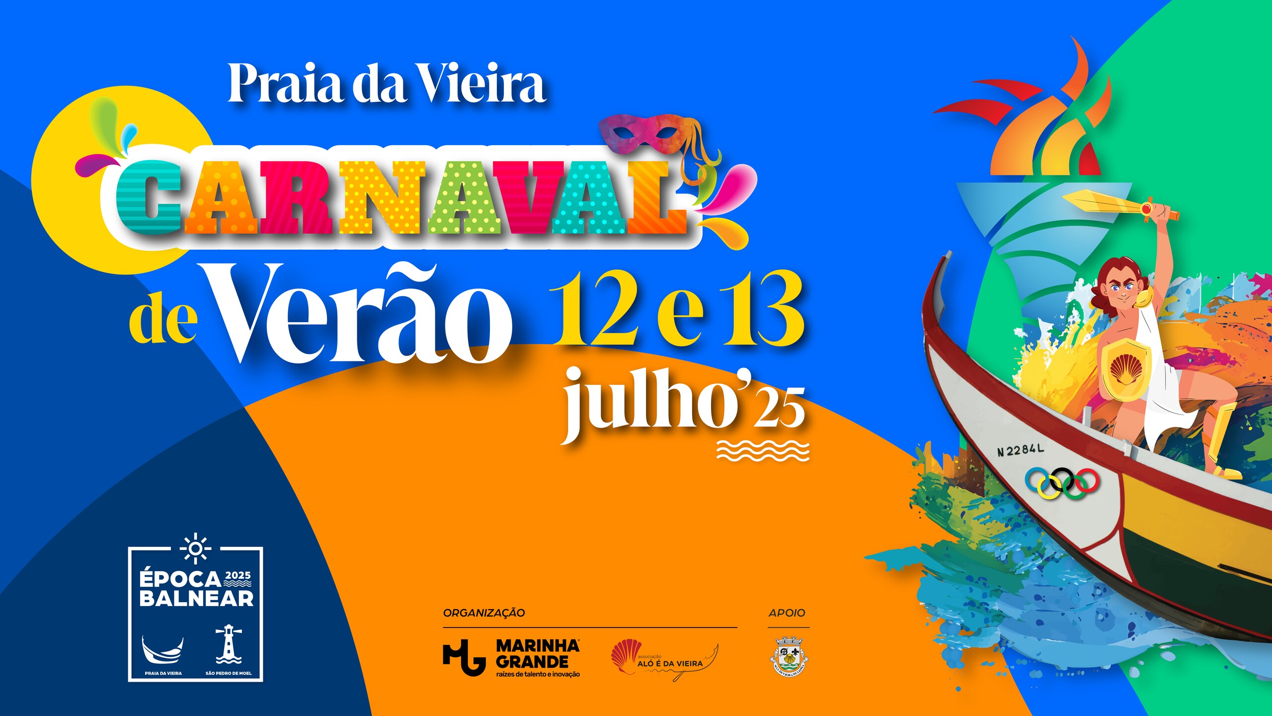 A Praia da Vieira vai encher-se de cor, ritmo e muita animação com a segunda edição do Carnaval de Verão, que se realiza nos dias 12 e 13 de julho de 2025, numa organização da Câmara Municipal da Marinha Grande e da Associação “AlóédaVieira”.