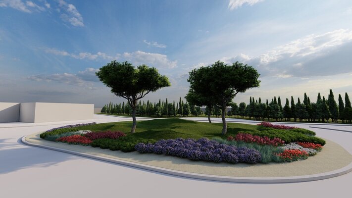 Inspirada no Pinhal de Leiria, a proposta inclui modelações onduladas que evocam dunas, facilitam a drenagem de águas pluviais e preservam a visibilidade. Será criada uma faixa periférica permeável para reforçar a segurança. Está ainda prevista a plantação de três pinheiros mansos, em homenagem ao pinhal histórico da região.