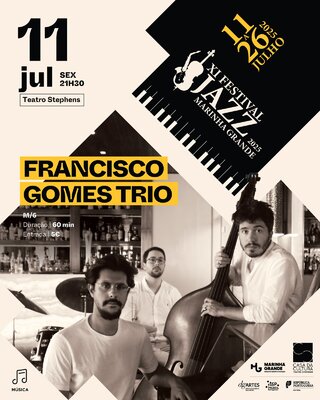 A abertura do festival cabe ao Francisco Gomes Trio, que presta homenagem ao pianista e compositor Cedar Walton, figura marcante do jazz afro-americano. O baterista Francisco Gomes, natural da Marinha Grande, junta-se a João Pedro Coelho (piano) e Romeu Tristão (contrabaixo) para interpretar alguns dos temas mais icónicos — e outros menos conhecidos — do homenageado. O trio surgiu de uma residência artística em Lisboa e propõe um espetáculo intenso e cheio de respeito pelo legado musical de Walton.