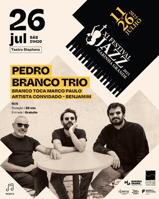 O guitarrista Pedro Branco apresenta o projeto "Branco toca Marco Paulo", uma reinvenção jazzística da obra do icónico cantor português. Acompanhado por João Sousa (bateria) e Carlos Barretto (contrabaixo), Branco revisita temas de discos menos conhecidos como "Ver e Amar" (1970), bem como clássicos como “Eu Tenho Dois Amores” ou “Sempre que Brilha o Sol”. Para este espetáculo especial, o trio convida Benjamim, nome marcante da cena indie nacional, que empresta voz, guitarra e sensibilidade a um concerto que une improvisação contemporânea e memória coletiva com irreverência e emoção.