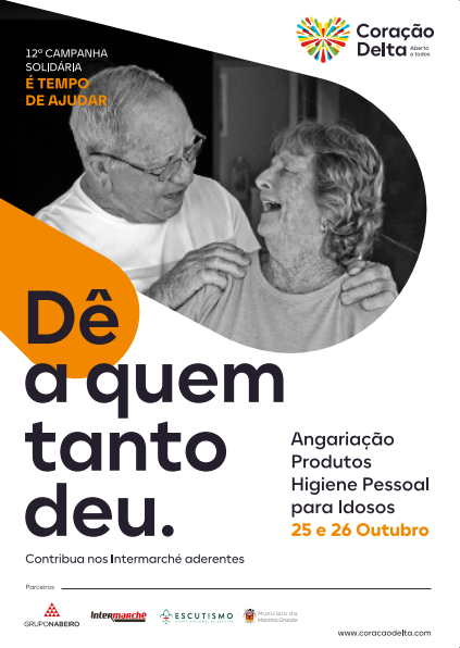 De 25 a 26 de outubro estará a decorrer a 12ª Campanha Solidária "É Tempo de Ajudar", para angariação de produtos de higiene pessoal para idosos em situação de vulnerabilidade, numa parceria Delta Cafés, Intermarché (aderentes), Grupo Nabeiro, Escutismo e Município da Marinha Grande.