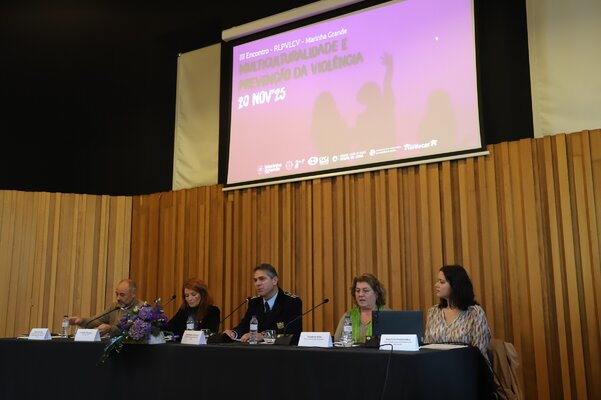 O primeiro painel, moderado pelo Comandante Distrital da PSP de Leiria, Domingos Antunes, abordou temas como os desafios da integração, violência ao longo do ciclo de vida, tráfico humano e o impacto da violência nas famílias.