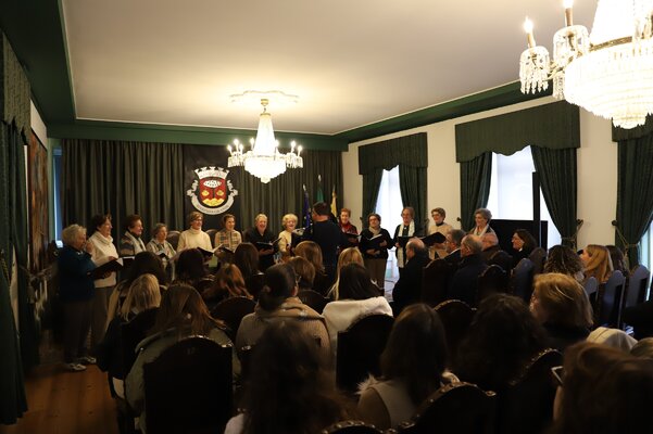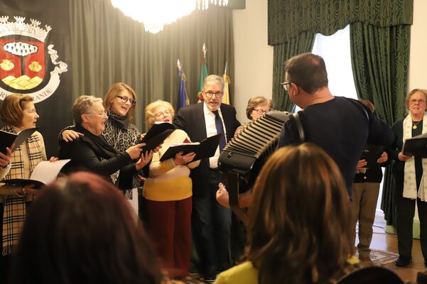 Os cânticos tradicionais, interpretados pelos elementos deste grupo da Associação ADE.SER II, foram ouvidos pelo presidente da Câmara, Paulo Vicente; pela presidente da Assembleia Municipal, Catarina Sarmento e Castro; e pelos vereadores Armando Constâncio, Carla Santana e Sérgio Silva, bem como por colaboradores do Município.