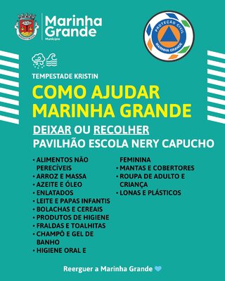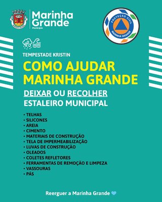 Na sequência dos impactos provocados pela tempestade Kristin, o Município da Marinha Grande encontra-se a promover ações de apoio solidário à população afetada, apelando à colaboração da comunidade, quer para prestar ajuda, quer para responder a necessidades imediatas.