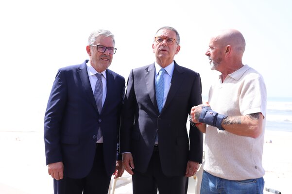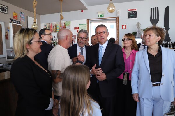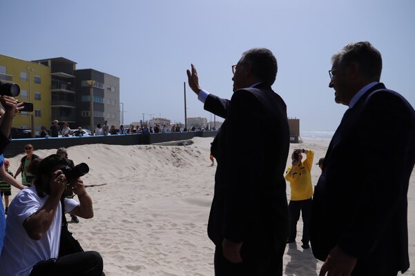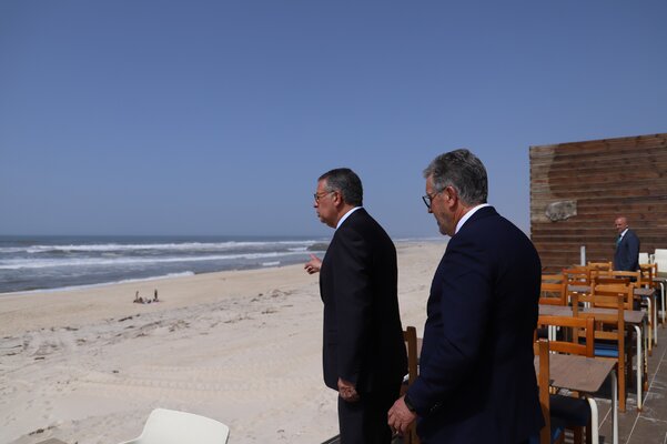 O programa da visita teve início na Praia da Vieira, com passagem pela Avenida Marginal, até aos Pavilhões da Arte Xávega.