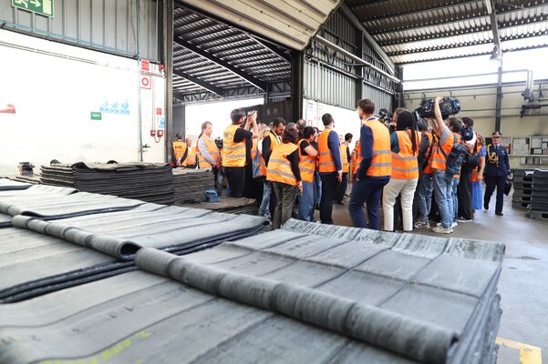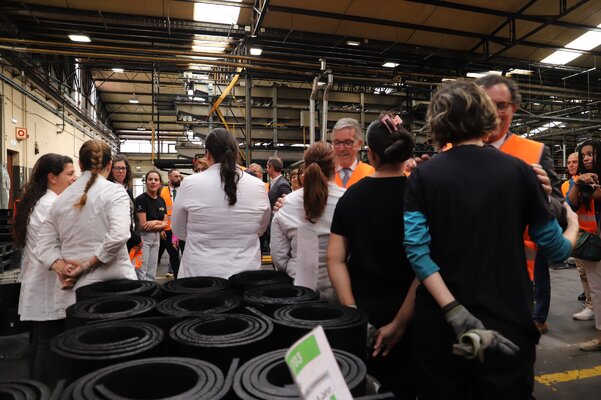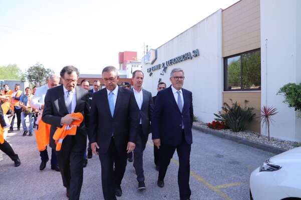 A comitiva visitou o Eucalipto Centenário, no Tremelgo, seguindo depois para uma visita à Empresa Industrial de Borracha, S.A., na Zona Industrial da Marinha Grande.