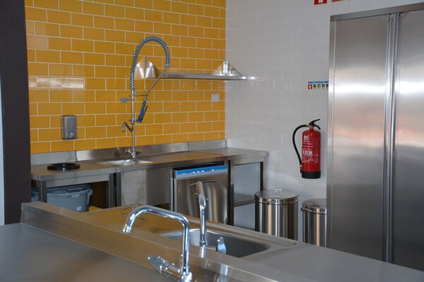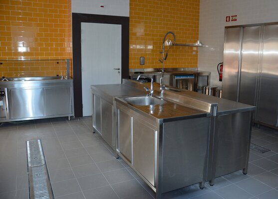 A cozinha foi objeto de requalificação total, ao níel dos seus revestimentos, equipamentos e infraestruturas. A reorganização das suas especificidades funcionais foram acauteladas, desde a lavagem dos alimentos, ao seu fornecimento, recolha e limpeza, e arrumação.