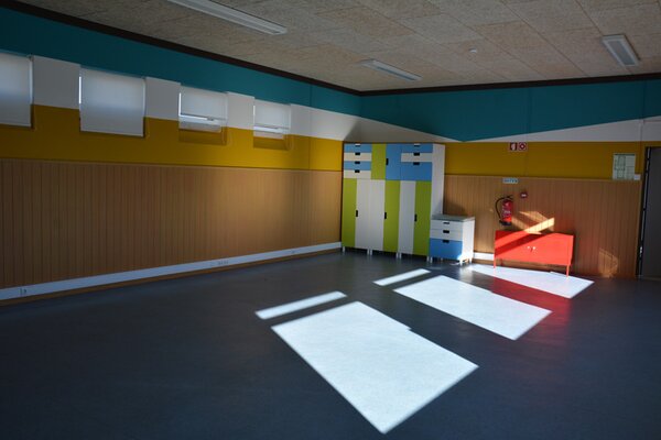 Foi ampliado e alterado o interior da cantina, com remodelação da cozinha e arrumos e nova despensa e área de vestiário/ instalação sanitária para os funcionários, acedidos através de novo espaço de circulação com acesso de serviço ao exterior.