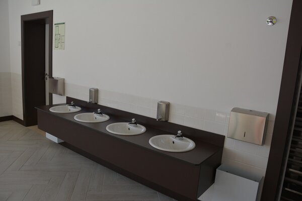 Foram construídas instalações sanitárias divididas por sexo para as crianças utilizadoras do espaço de refeitório e biblioteca.