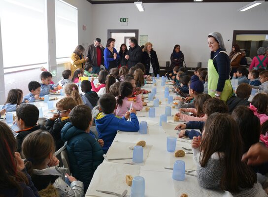 A primeira refeição da nova cantina foi servida a cerca de 100 crianças que mostraram o seu agrado pelo novo espaço, mais funcional, salubre, bonito e insonorizado.