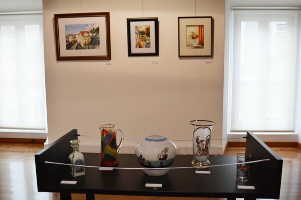 A mostra propõe ao visitante a observação direta das obras e pontualmente recorrendo a documentação fotográfica, sendo abordados os temas: trabalho vidreiro, paisagem marítima, paisagem florestal, paisagem urbana e edifícios, retratos, pescadores, ilustração de lenda local, flores, temas e tipos populares, luta social, pintura sobre vidro, mobiliário, vestuário, cartazes, cenografia, capa de livros, ilustração em livros, autocolantes, catálogos de exposições, rótulo (desenho) para pintura em vidro.