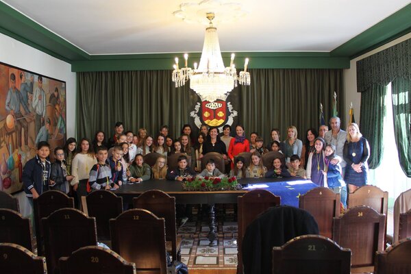 A vereadora Célia Faustino Guerra, responsável pelo pelouro da Educação da Câmara Municipal da Marinha Grande, recebeu na passada segunda-feira, 6 de novembro, no Salão Nobre dos Paços do Concelho, os alunos do programa Erasmus “Music is… Life Long Learning”.
