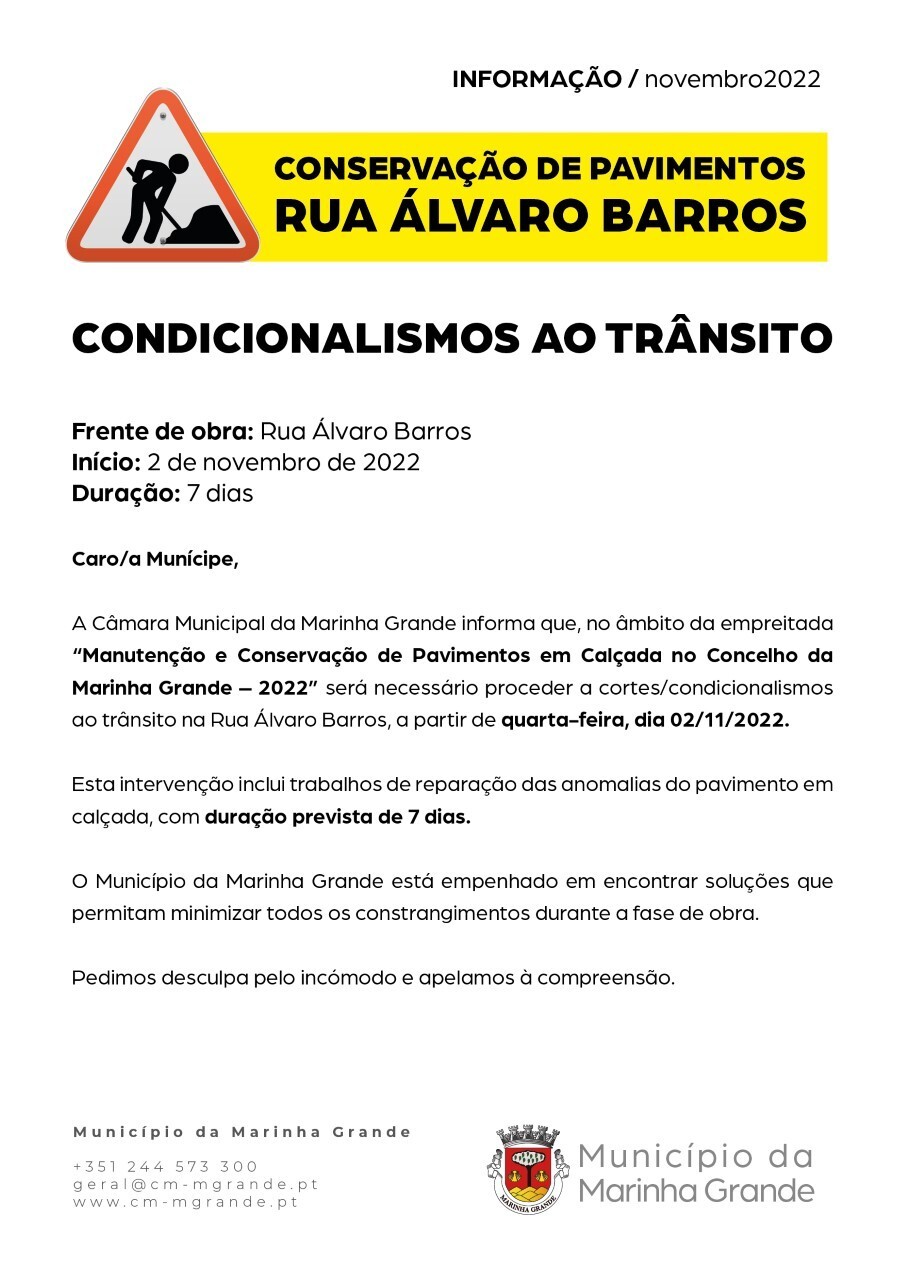 CONDICIONALISMOS AO TRÂNSITO NA RUA ÁLVARO DE BARROS