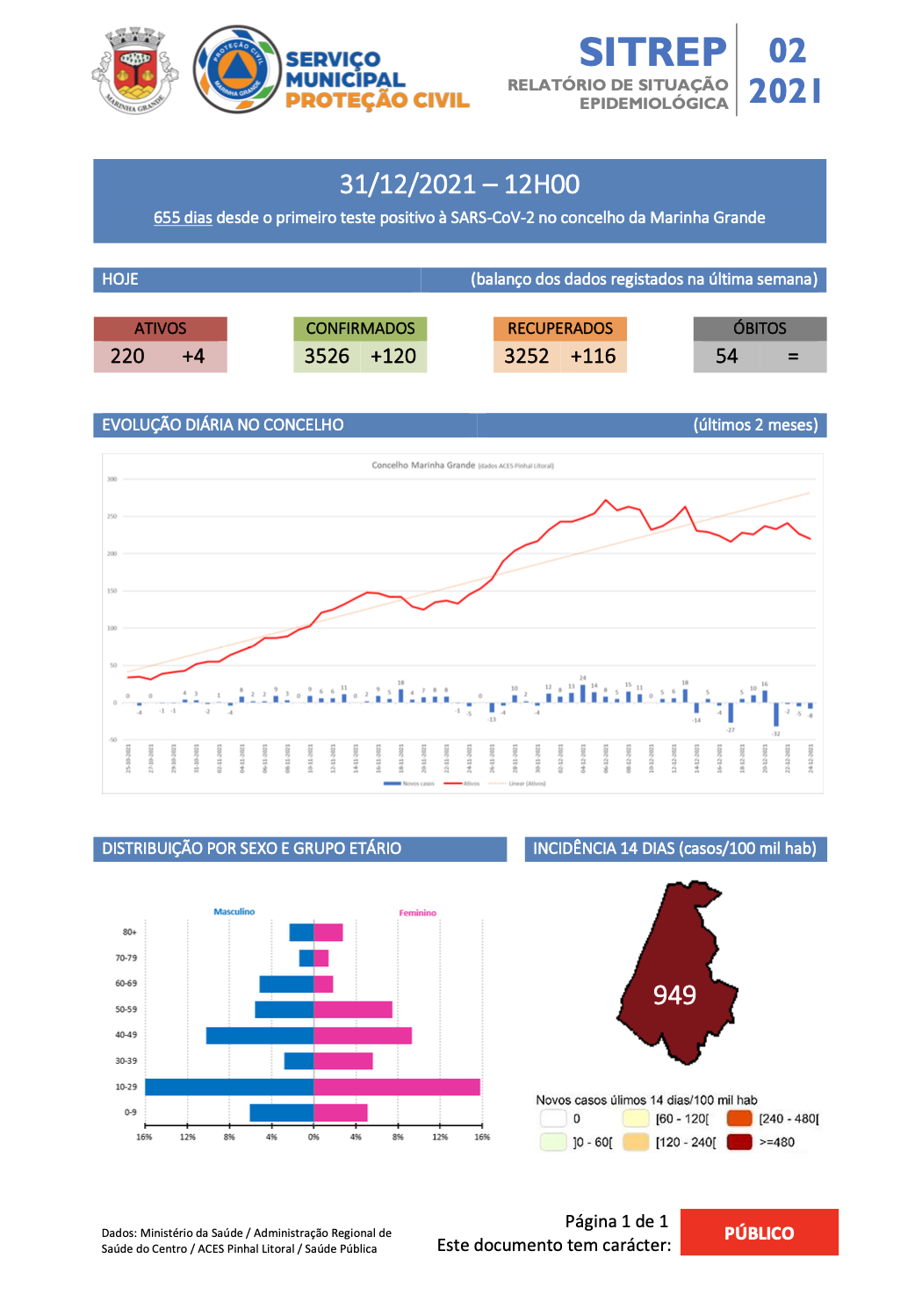 COVID- 19 - Situação epidemiológica semanal no concelho da Marinha Grande 31/12/2021