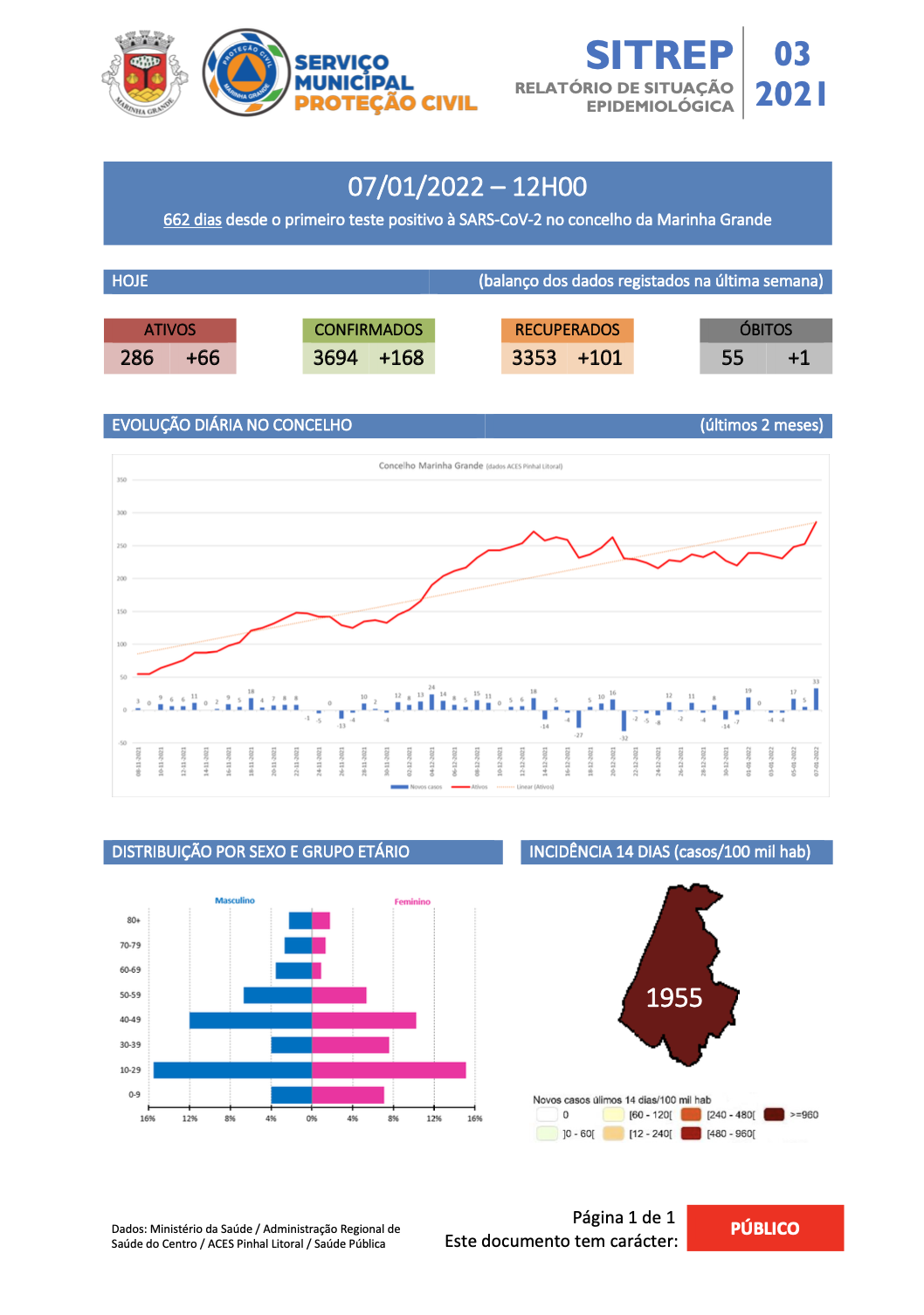 COVID- 19 - Situação epidemiológica semanal no concelho da Marinha Grande 07/01/2021