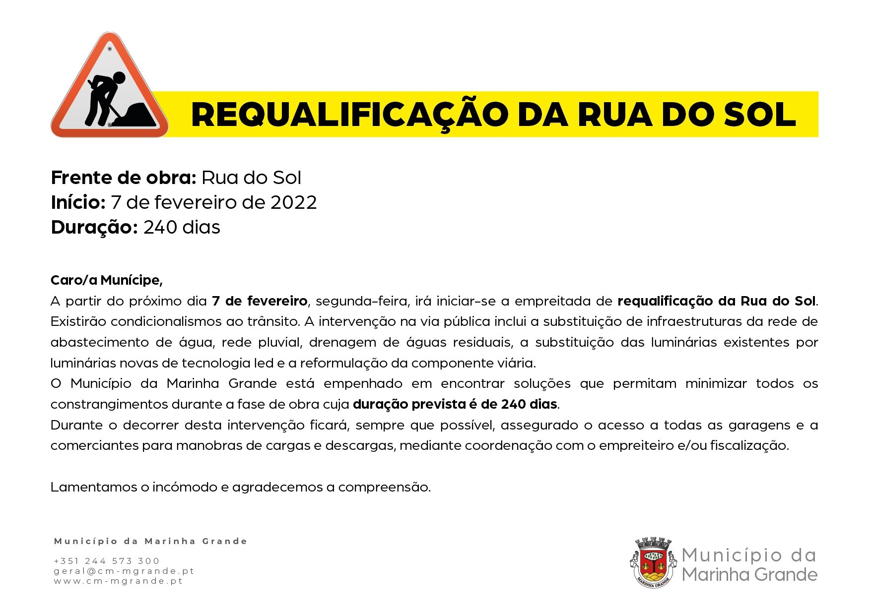 CÂMARA INVESTE MAIS DE 376 MIL EUROS NA REQUALIFICAÇÃO DA RUA DO SOL
