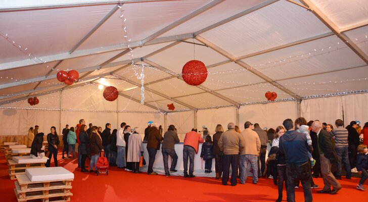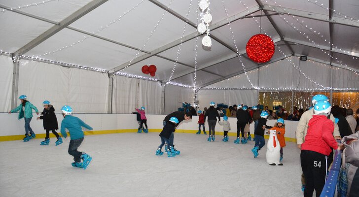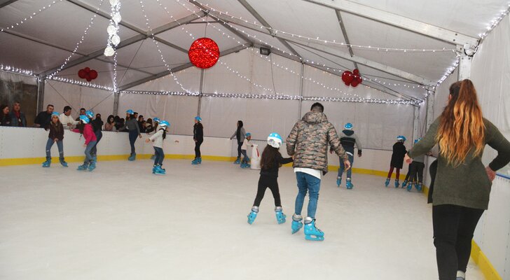Instalada na Praça Guilherme Stephens, a Pista de Gelo tem a área de 200 metros quadrados. O preço simbólico de 2 euros de cada utilização reverte integralmente a favor das corporações de Bombeiros Voluntários da Marinha Grande e de Vieira de Leiria e da São Silvestre - Associação de Solidariedade Social da Moita.