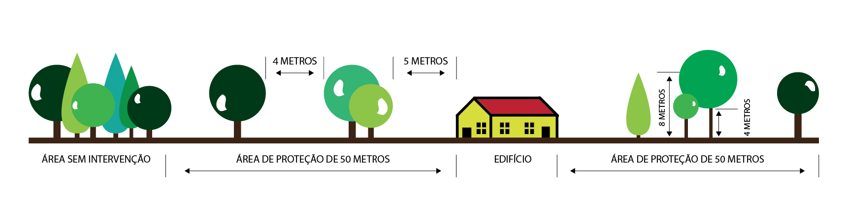 1 - A distância entre as copas das árvores deve ser no mínimo de 4 m;