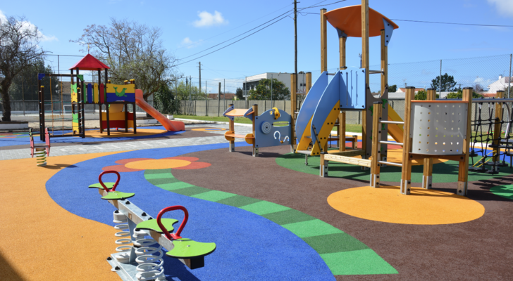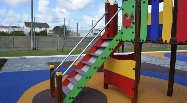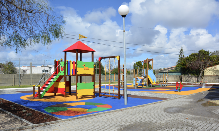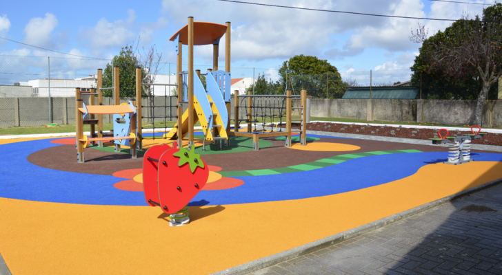 A área encontra-se agora mais segura, funcional e adequada para os fins a que se destina. Foi colocado um pavimento sintético de borracha, com jogos de cores e formas que se articulam entre si e ampliam a função lúdica do espaço.