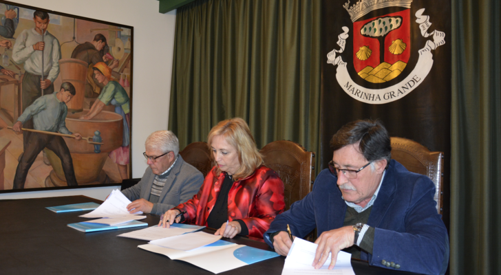O programa de homenagem teve início no Salão Nobre dos Paços do Concelho, com a assinatura dos protocolos de colaboração com as Associações Humanitárias dos Bombeiros Voluntários de Marinha Grande e de Vieira de Leiria.