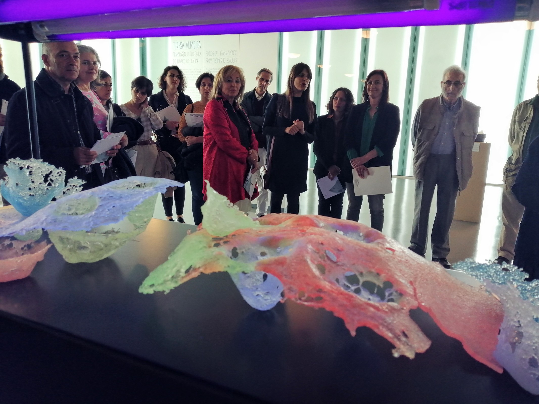 Dividida em duas temáticas, a exposição “Transparência ecológica - Do trópico ao glaciar” apresenta-nos obras inspiradas nos corais, realizadas em vidro luminescente, desprovidas de cor que, quando expostas à luz ultravioleta, ganham vida através das suas cores luminosas. No espaço expositivo há, inclusivé, uma sala escura com luzes ultravioletas, onde é possível observar o efeito resultante desta conjugação.