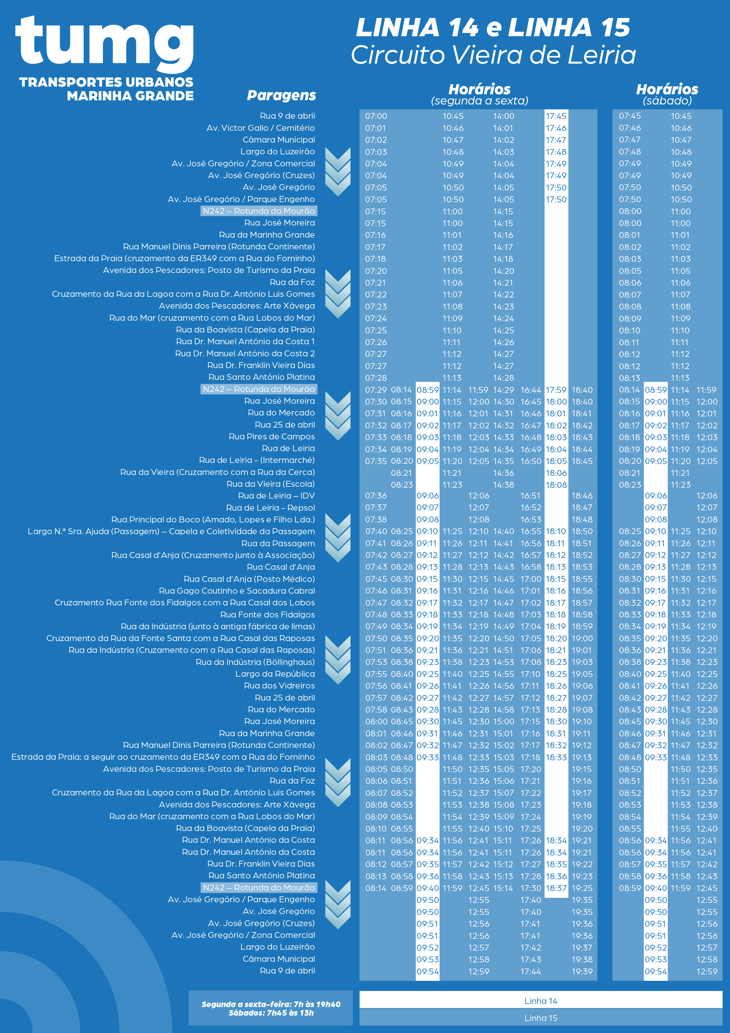 Horários das novas linhas 14 e 15 TUMG - Vieira