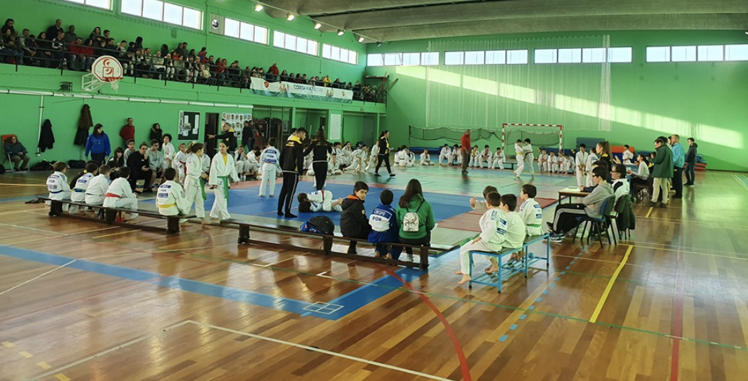 O pavilhão da Escola Guilherme Stephens acolheu várias dezenas de jovens judocas oriundos do Distrito de Leiria e de Coimbra, no escalões de Benjamins, Infantis, Iniciados e Juvenis.