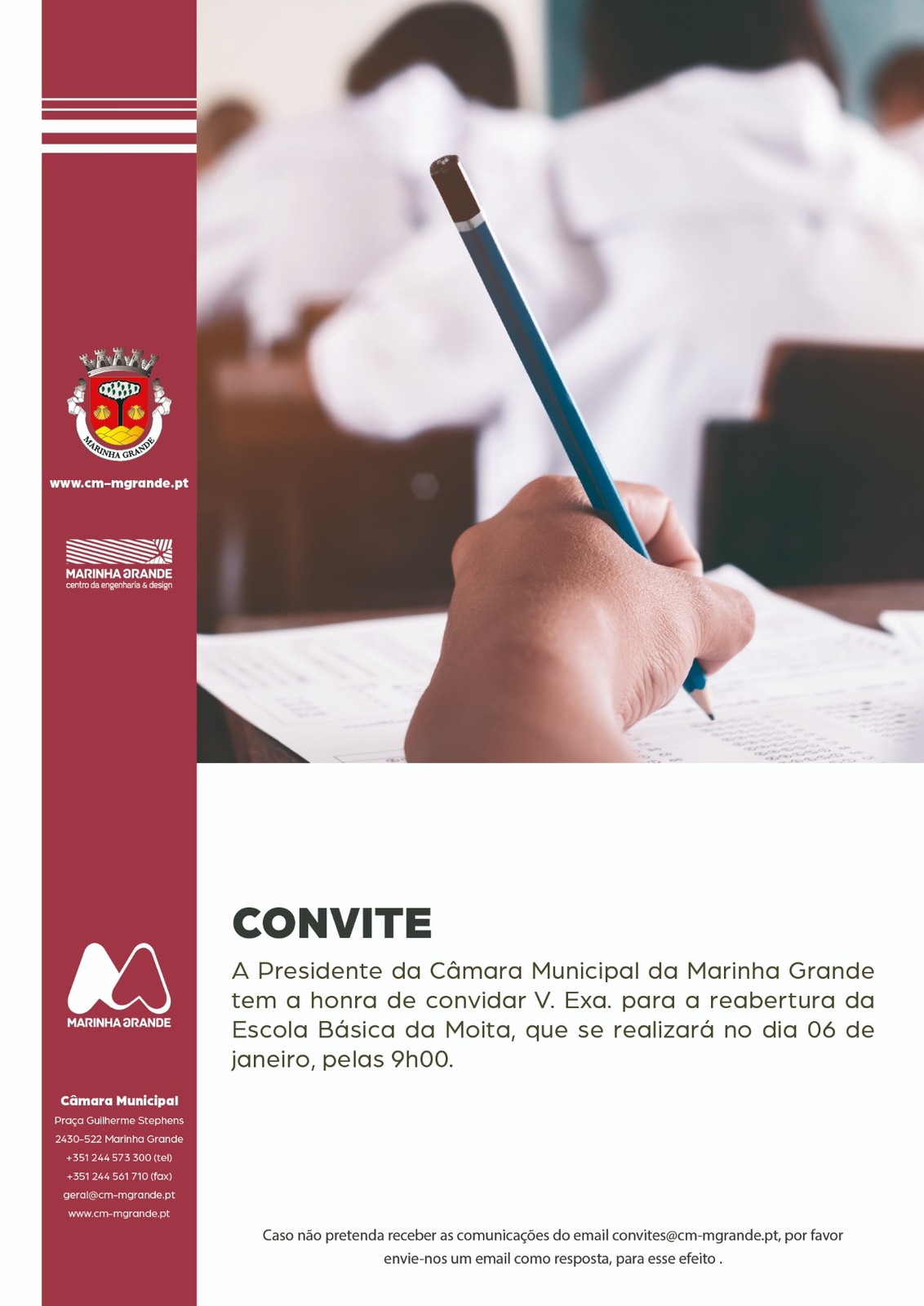 O Secretário de Estado Adjunto e da Educação, João Costa, vai estar presente na cerimónia de reabertura da Escola Básica da Moita, no concelho da Marinha Grande, que decorre no dia 6 de janeiro (segunda-feira), pelas 09h00.