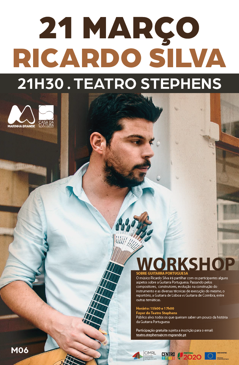 Encontram-se abertas as inscrições para o workshop de guitarra portuguesa, promovido pelo músico Ricardo Silva, que decorre no dia 21 de março (sábado), das 15h00 às 17h00, na Casa da Cultura Teatro Stephens, situada na Praça Guilherme Stephens, na Marinha Grande.