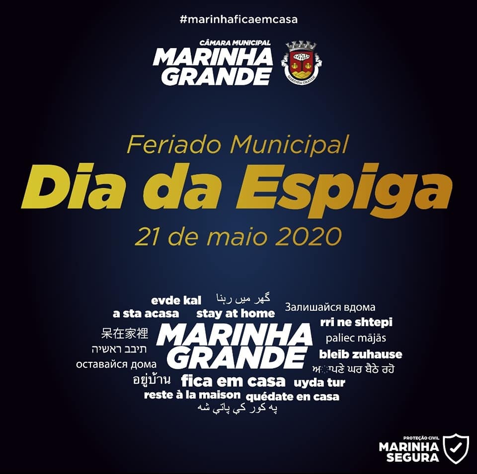 No feriado municipal, que este ano se assinala no dia 21 de maio de 2020, Dia da Espiga (Quinta-Feira da Ascensão), celebramos online através da página de Facebook, youtube e site do Município, devido às atuais restrições, e em casa com um programa dedicado à história do concelho da Marinha Grande, que tem início às 18h00.