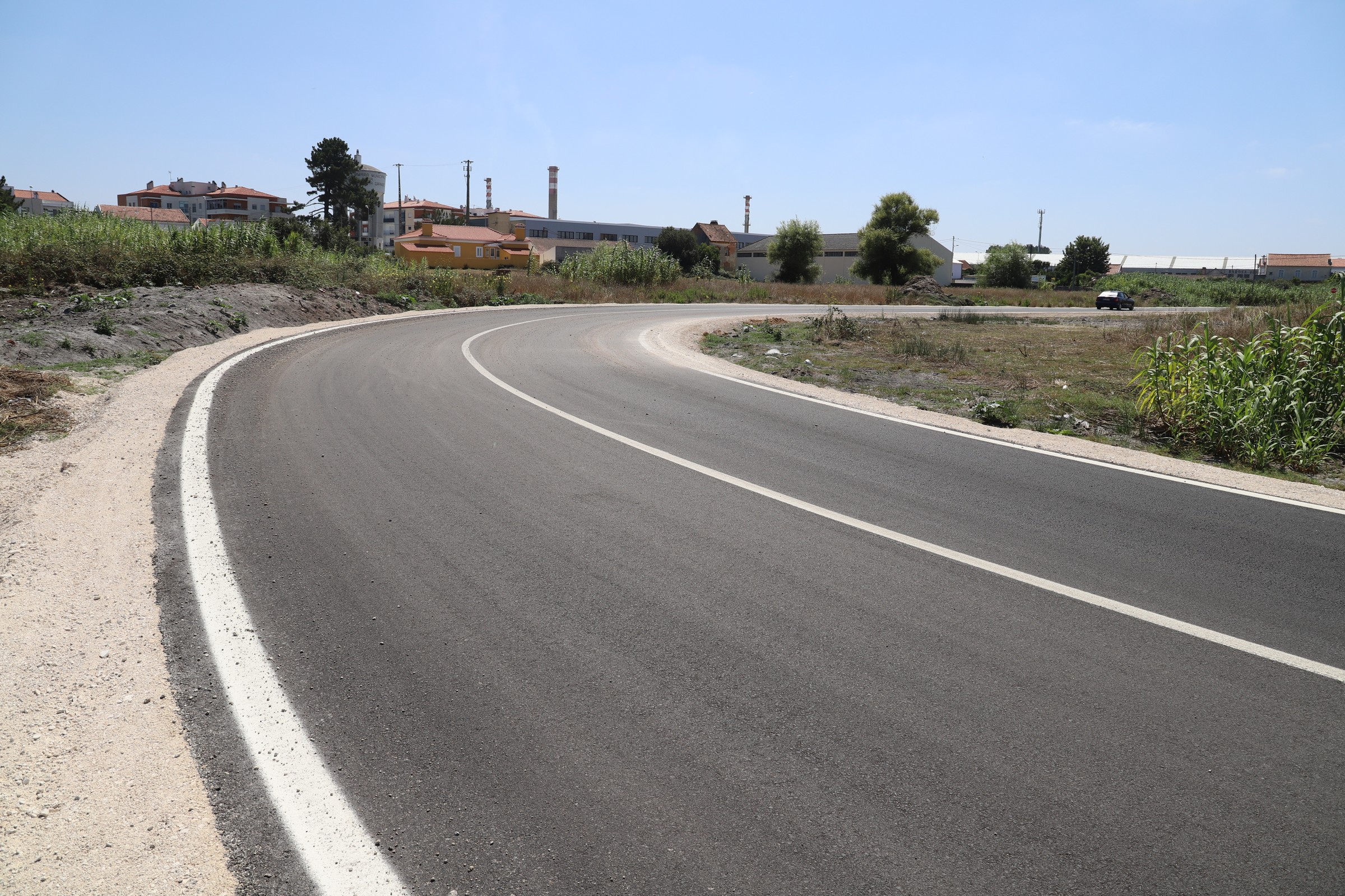 Os trabalhos mais significativos foram os movimentos de terras e execução da estrutura de pavimento da via e remoção de betuminoso da via existente.