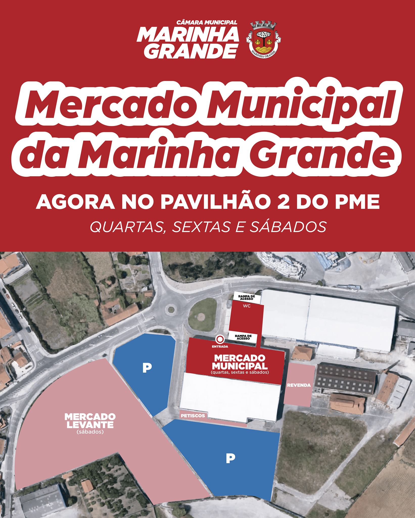 O Mercado Municipal da Marinha Grande funciona agora no Pavilhão 2 do Parque Municipal de Exposições, após obras de adequação do espaço para as bancas, os talhos e peixaria. Desde o início de 6 janeiro, o Mercado Municipal decorre no Pavilhão 2 remodelado.