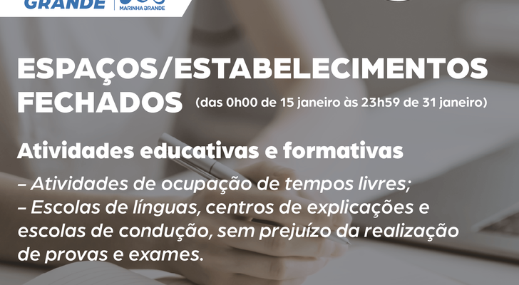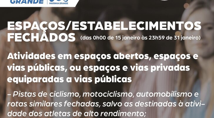 O decreto 3-A/2021 da Presidência do Conselho de Ministros que regulamenta o novo estado de emergência devido à pandemia da covid-19, em vigor entre as 00:00 de dia 15 de janeiro e as 23:59 de 30 de janeiro, determina o encerramento de espaços e estabelecimentos comerciais.