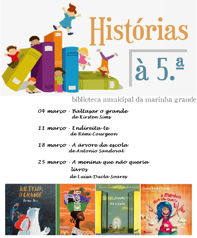 A Biblioteca Municipal da Marinha Grande vai dar continuidade às sessões online de livros infantis, todas as quintas-feiras, no mês de março, com o objetivo de destacar a importância da leitura na educação das crianças e contribuir para o seu desenvolvimento social e emocional através da literatura infantil.