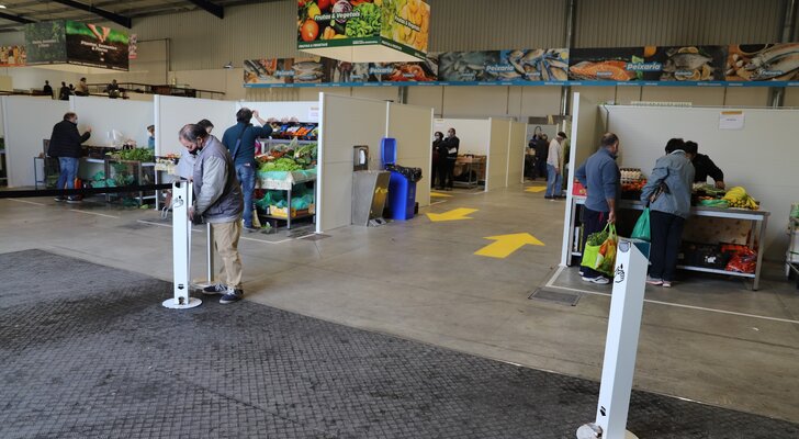 Encontram-se corredores largos, com sentidos obrigatórios, sinalética e dispensadores de álcool gel, para a realização das compras em segurança.