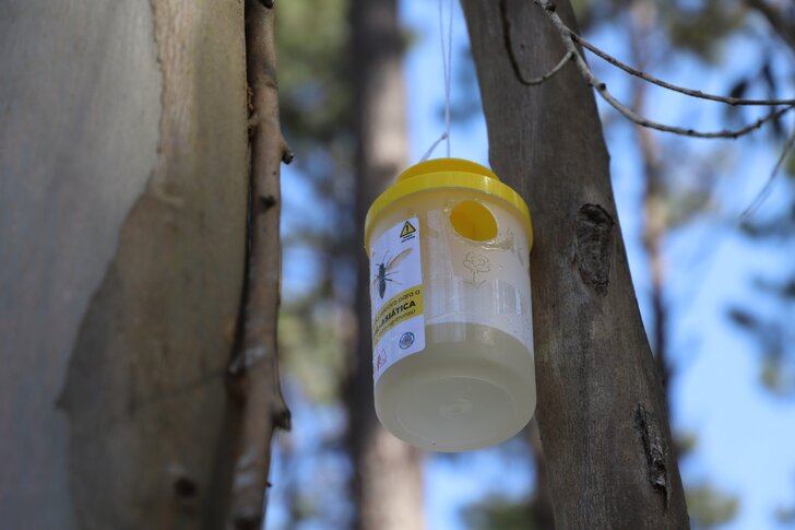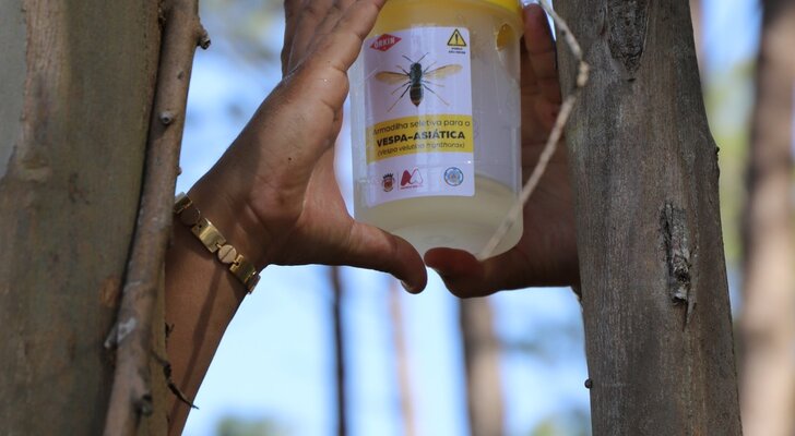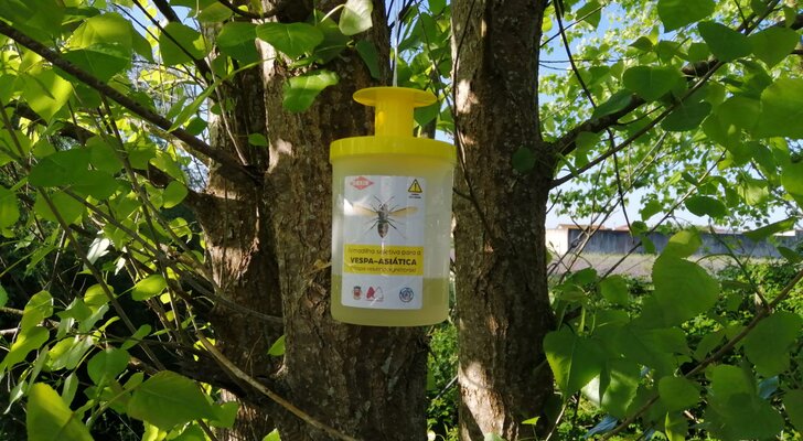 Estão a ser colocadas 200 armadilhas seletivas para capturar a vespa asiática, que estão devidamente identificadas com um rótulo e que estão a ser distribuídas por todo o concelho da Marinha Grande.