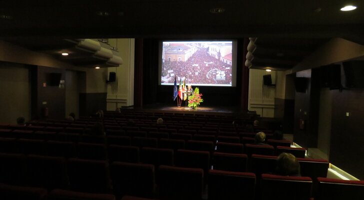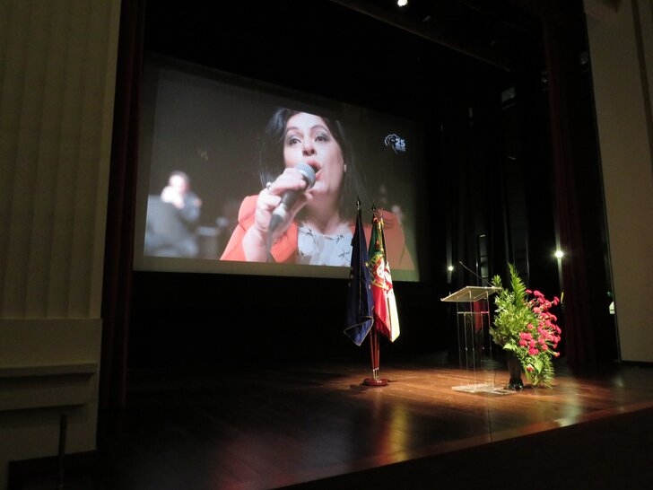 A iniciativa culminou com a entoação do Hino Nacional “A Portuguesa”, por Luísa Oliveira, acompanhada por elementos da Orquestra Juvenil da Marinha Grande, gravado no Teatro Stephens.