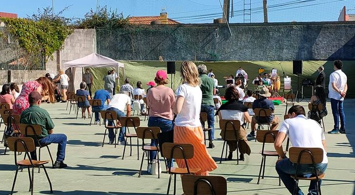 Os jovens músicos dirigidos pelo maestro Élio Frois fizeram a atuação de estreia, perante uma plateia cheia e sob o rigoroso respeito pelas regras da Direção-Geral de Saúde.