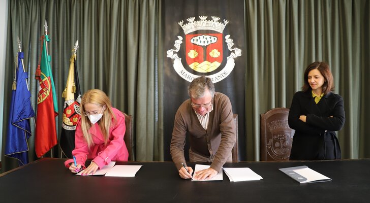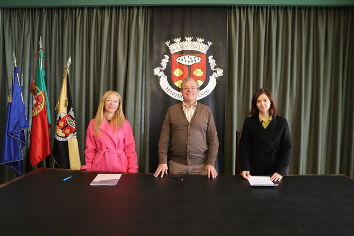 O Município da Marinha Grande formalizou uma parceria com a Associação Novo Olhar II, para o apoio à dinamização do Projeto “Santana - Equipas de Rua", cujo protocolo foi assinado na manhã desta segunda-feira, 15 de novembro, no Salão Nobre dos Paços do Concelho, entre o presidente da Câmara, Aurélio Ferreira, e a presidente da Associação, Ana Patrícia Quintanilha, na presença da vereadora da Ação Social, Ana Alves Monteiro.