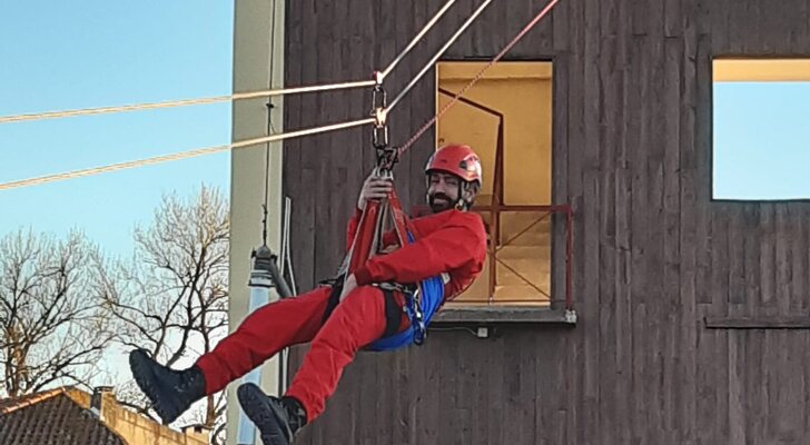 As duas ‘vítimas’ desta ocorrência serão retiradas recorrendo a técnicas de Maca de Resgate e Triângulo de Evacuação. A atividade pretende promover o treino operacional (particularmente ao nível tático e de manobra), exercitar os procedimentos operacionais de emergência, verificar dificuldades e constrangimentos no salvamento de vítimas em edifícios em grande altura na área de atuação dos Bombeiros da Marinha Grande.