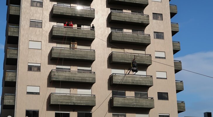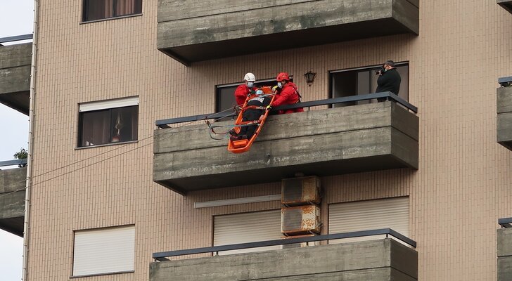 Durante a manhã, coube à equipa de Salvamento em Grande Ângulo da corporação proceder à evacuação de duas vítimas de um 6.º andar, recorrendo a técnicas de salvamento em grande ângulo, nomeadamente a maca de resgate e o triângulo de evacuação.