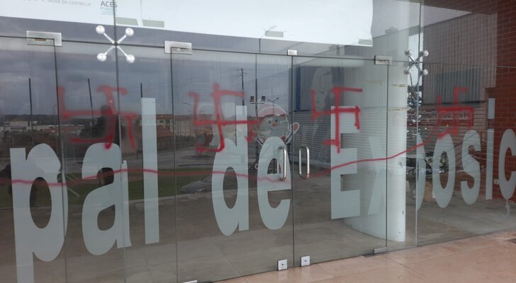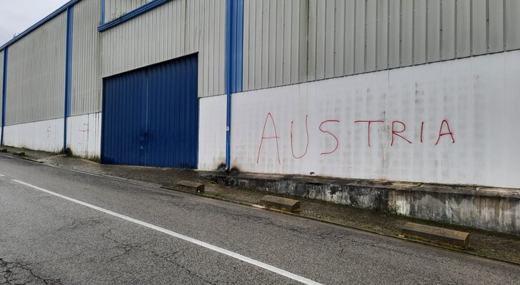 Foram inscritas cruzes suásticas na fachada do Centro de Vacinação e a palavra "Áustria” numa das paredes do edifício.