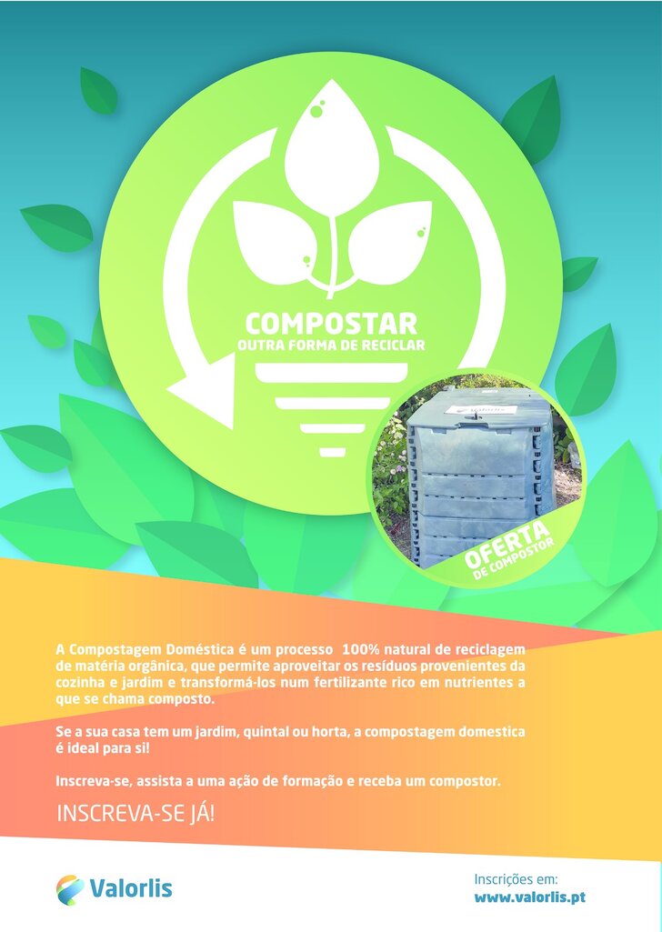 A Valorlis e a Câmara Municipal da Marinha Grande têm em curso o programa de compostagem doméstica, para oferta de 261 compostores a munícipes do concelho, que se candidatem através do portal www.valorlis.pt.
