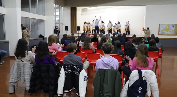 Na sessão de encerramento do intercâmbio Erasmus +, os alunos dos vários países fizeram uma apresentação acerca do seu país de origem e houve também a atuação dos Tocándar.